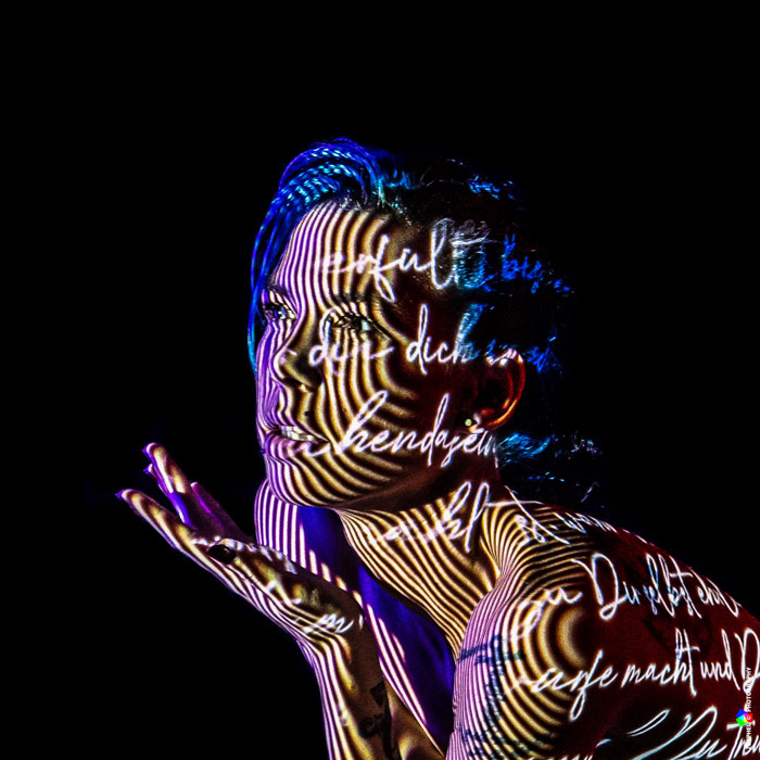 Schon seit einigen Monaten sind ja einige Body Mapping Werke von Michael bei uns zu sehen, im Zusammenspiel mit Skulpturen von Kirches-Ban.de. Im Folgenden nochmal ein Beispiel dieser Arbeiten. Und für diejenigen, die noch mehr Lichtkunst von Michael Zöphel sehen und erleben möchten planen wir bereits eine Ausstellung, die am Freitag, dem 19. Juni bei uns eröffnet werden wird, wie üblich um 21 Uhr. Bitte gerne diesen Termin schon mal vormerken